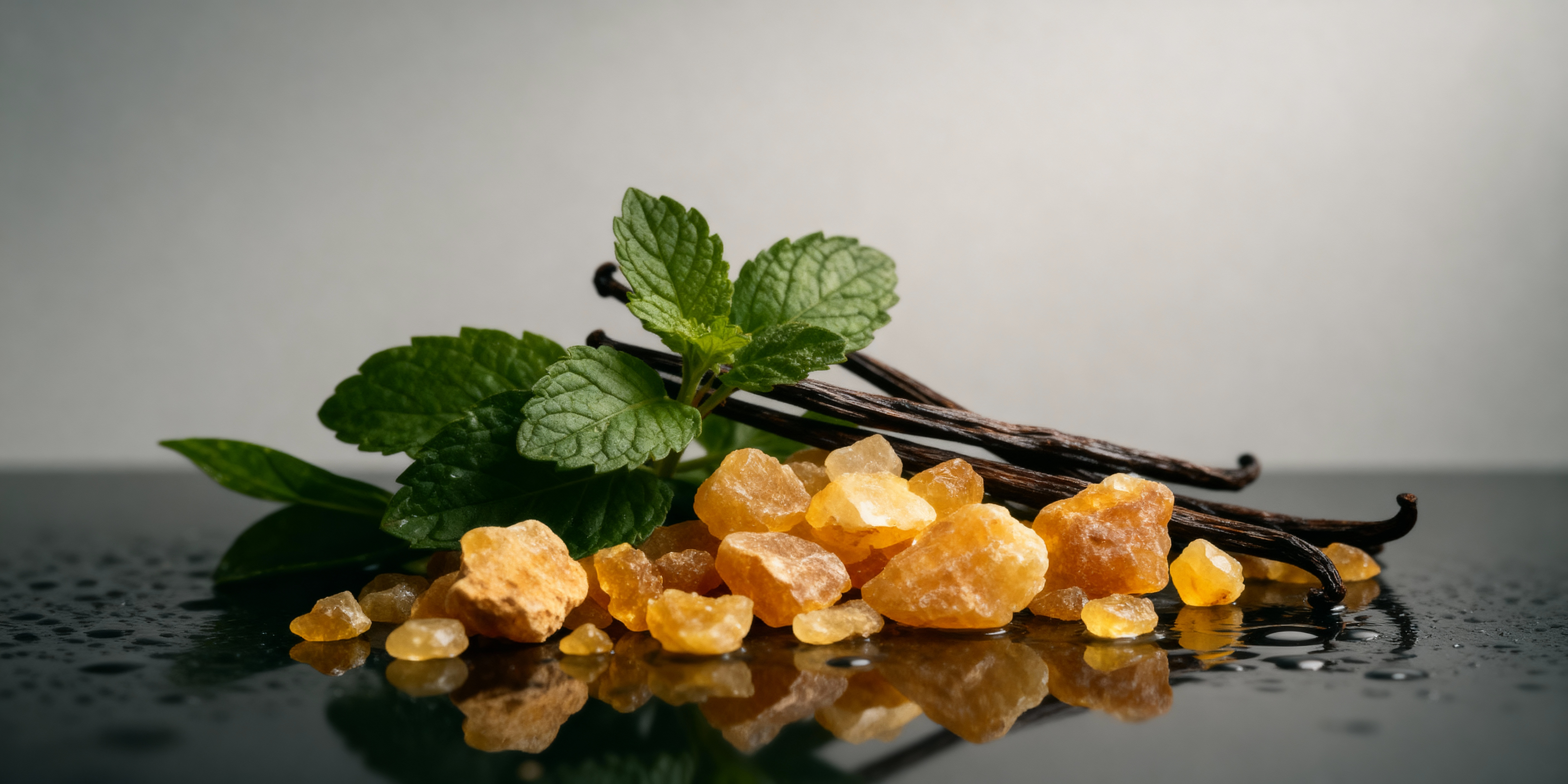 Ein warmes, sinnliches Fundament aus balsamischem Benzoin, erdig-holzigem Patchouli und weicher Vanille. Es sorgt für Tiefe, Haltbarkeit und einen umschmeichelnden, amber-gourmandigen Nachhall, der die floralen Noten harmonisch abrundet.