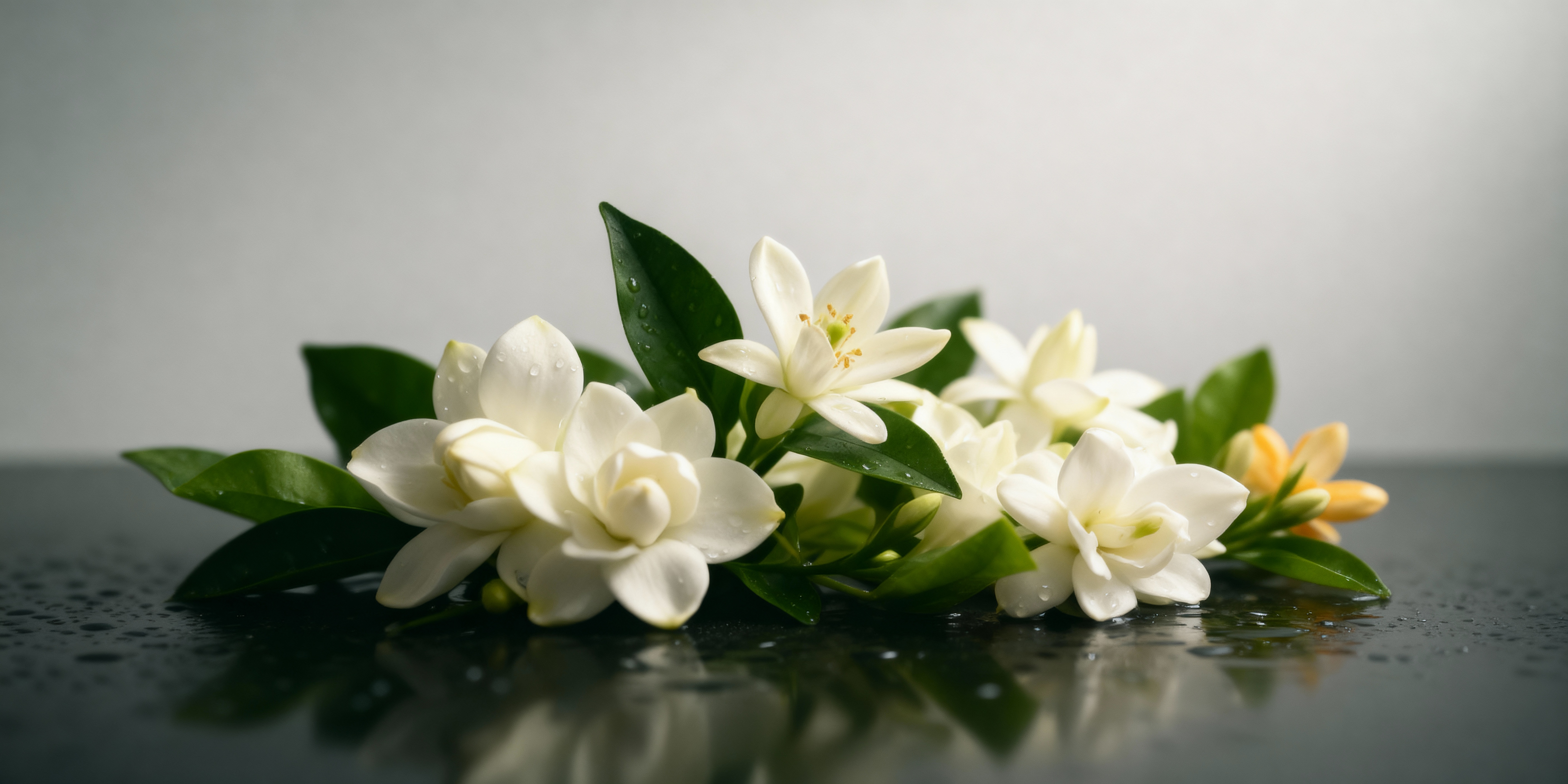 Ein üppiges weißblumiges Bouquet aus Jasmin, Tuberose und Orangenblüte. Cremig und leuchtend mit sanft honigsüßen, leicht indolischen Facetten – der charakterbildende Kern, der Eleganz und Sinnlichkeit trägt.